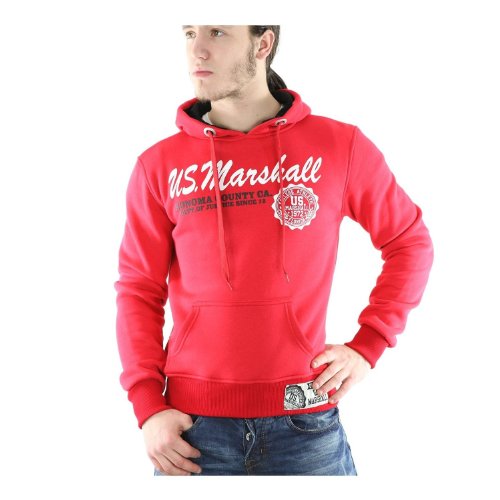 Ⓓ Sweat à Capuche US MARSHALL - Taille XS - Couleur Rouge/Noir