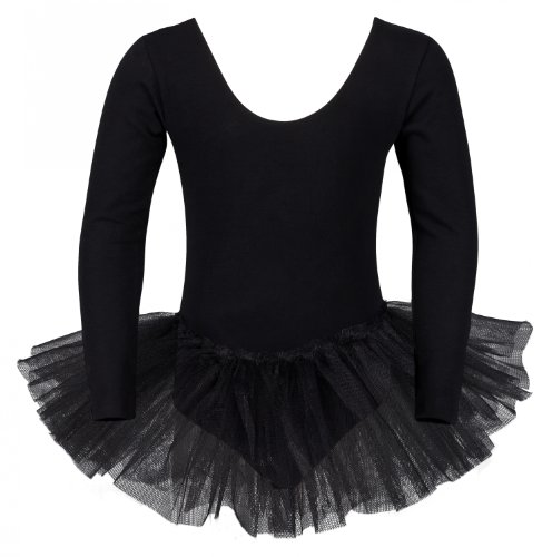 Ⓗ Tutu de danse "Alea" - manches longues - 3 voiles de tulle - danse classique - noir - 92/98 3-4 ans